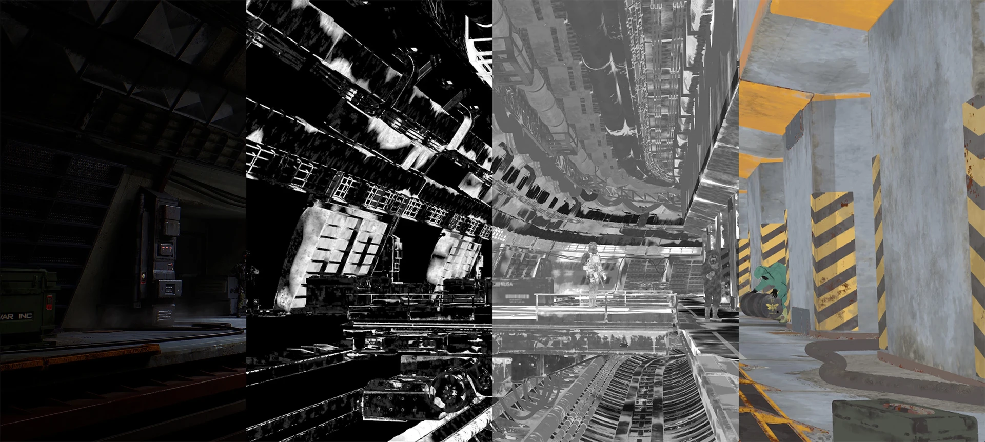 After getting my initial material layering done, I noticed that my vertex painting looked too solid. I wanted edge wear but still wanted full control without constantly jumping in and out of a painting tool. To solve this I decided to use RGB masks to help facilitate where I wanted certain materials to appear. I quickly realized that generating a mask per object was going to be tedious since I had around 50 individual mesh components that needed masks. So I used ChatGPT to help generate a script that batch applied smart materials to specific texture sets inside Substance Painter. I still had to manually plug the masks into my layered material, but the script saved me hours of repetitive work. Next I Implemented the masks into my materials in Unreal and realized I wanted more control over the mask influence. This became an issue because I couldn’t achieve what I needed without an alpha channel per channel. The way I solved this was by removing anything below a value of 0.49 and adding anything above 0.51. With that setup, I could add or remove details on a per channel basis without needing an alpha channel. [3b] With this method I was able to get a ton of variation with a limited pallet of base materials. [3c] [3d] [3e]
